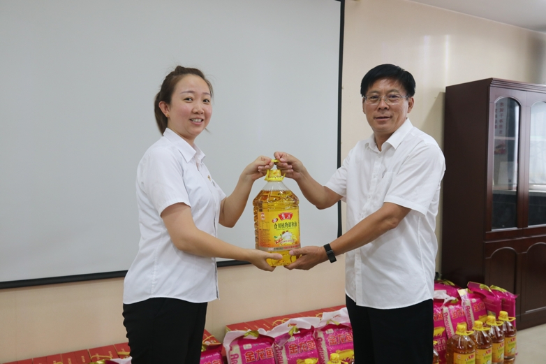 會(huì)議最后,領(lǐng)導(dǎo)班子成員依次為退役軍人發(fā)放節(jié)日慰問品,并集體合影留念。