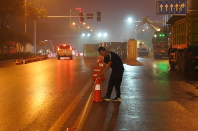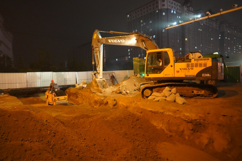 發(fā)令槍已經(jīng)打響,時不我待。在東部新區(qū)集中供熱項目部臨時黨支部統(tǒng)一部署下,一標段現(xiàn)場管理組的同志協(xié)同全體參建單位,按照施工預(yù)案,各司其職,嚴陣以待,黨員干部沖鋒在先,兼顧現(xiàn)場管理和地面交通疏導(dǎo),大家以小時為單位,各道工序緊密銜接,有序推進,當晚9時許,瀟瀟雨聲中,溝槽開挖,經(jīng)一夜持續(xù)機械加人工作業(yè)至周六13時,溝槽成型,平整,碾壓,墊沙,下管,16時許,對管焊接至周日零時,探傷進場,經(jīng)拍片研判合格后,2點開始保溫,4時許,主路段開始回填,分層碾壓,同時路口北側(cè)彎頭焊接、探傷、保溫緊張銜接,至周日晚11時,清掃人員、水車,工人就位,準備拆除圍欄,周一凌晨1點,最后一道回填碾壓完成,清掃和沖洗路面……5時許,天色放亮,紅旗街韓信路口,路面清潔,交通恢復(fù)正常。