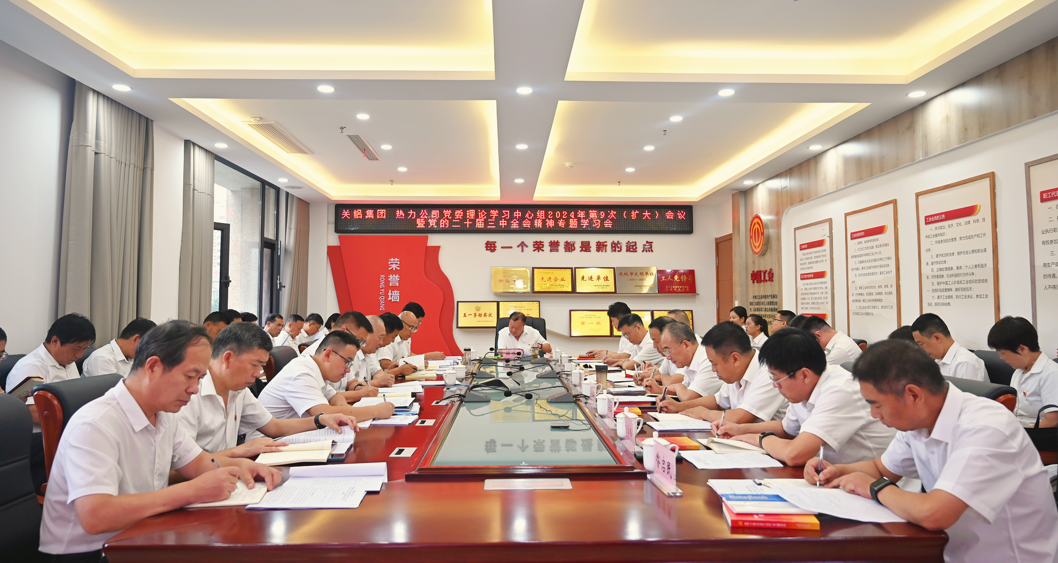 8月7日上午,公司聯(lián)合關(guān)鋁集團(tuán)召開黨委理論學(xué)習(xí)中心組2024年第9次(擴(kuò)大)會(huì)議暨黨的二十屆三中全會(huì)精神專題學(xué)習(xí)會(huì)。黨委書記、董事長杜偉師主持。運(yùn)城熱力、關(guān)鋁集團(tuán)領(lǐng)導(dǎo)班子成員、各黨支部書記、中層管理人員參加會(huì)議。