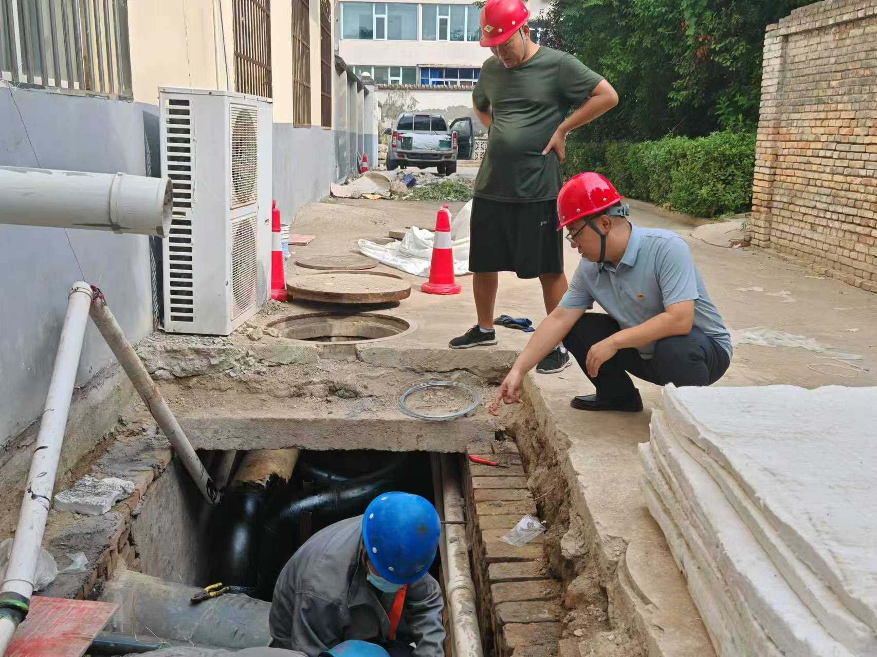 2024年5月,受大雨影響,與中銀路供熱管網(wǎng)項(xiàng)目毗鄰的原有雨水舊管出現(xiàn)大量漏水,雨水流至我方溝槽內(nèi),張博得知消息后,第一時(shí)間冒雨趕往現(xiàn)場(chǎng),聯(lián)系施工方對(duì)施工現(xiàn)場(chǎng)排水系統(tǒng)進(jìn)行檢查和清理,布置遮雨布,對(duì)施工材料和設(shè)備進(jìn)行妥善存放和保護(hù),對(duì)邊坡、溝槽等部位進(jìn)行全面的安全檢查,確保施工現(xiàn)場(chǎng)安全。面對(duì)大雨對(duì)施工的影響,張博說(shuō)“如果雨大的話,即便把水都排干,還是得等泥濘的管溝干一些才具備施工條件,這就會(huì)耽誤一兩天工期,真的是越下雨越操心”。為了預(yù)防暴雨影響,他安排專人關(guān)注天氣預(yù)報(bào),提前做好暴雨預(yù)警和防范工作,帶領(lǐng)項(xiàng)目部全體人員提前準(zhǔn)備好水泵、發(fā)電機(jī)、遮雨布、沙袋等防汛設(shè)備,如果遇到大雨,就用鏟車在管溝旁邊堆土,防止雨水漫進(jìn)管溝,影響工程施工進(jìn)度。