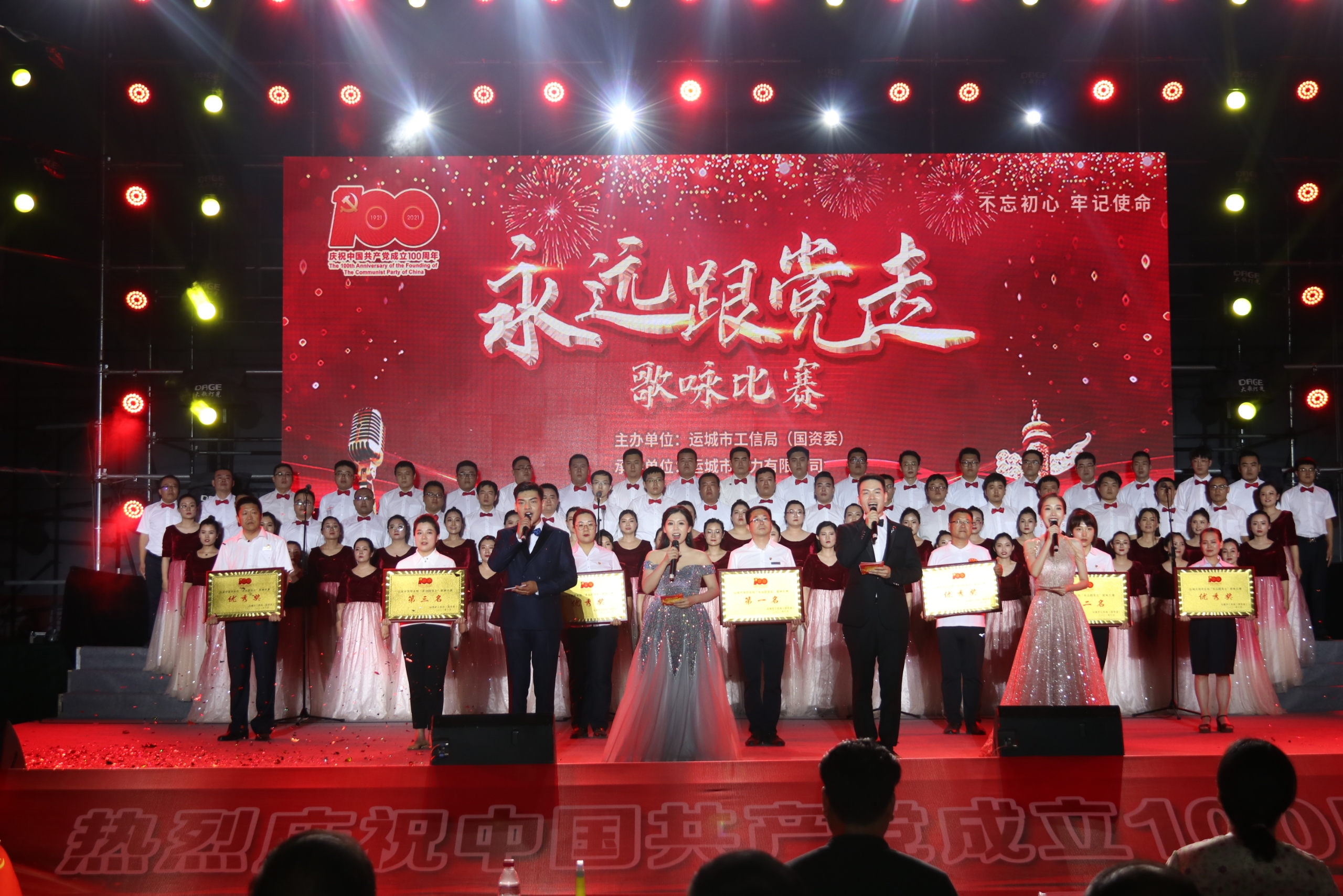 夜色中晚風(fēng)送來陣陣清涼,優(yōu)美的歌聲迎來如潮的掌聲。當(dāng)晚,各個參賽隊(duì)依次登臺演唱。在必唱曲目《沒有共產(chǎn)黨就沒有新中國》的嘹亮歌聲中拉開帷幕。我公司深情悠揚(yáng)的唱響自選曲目《天耀中華》,唱出國有企業(yè)黨員干部職工的濃濃愛黨情,展示了國有企業(yè)黨組織及黨員干部朝氣蓬勃、積極向上的風(fēng)采,將整場比賽推向高潮。在全場高唱《歌唱祖國》的歌聲中落下帷幕。最后,運(yùn)城市熱力有限公司以9.86分的優(yōu)異成績獲得比賽一等獎。